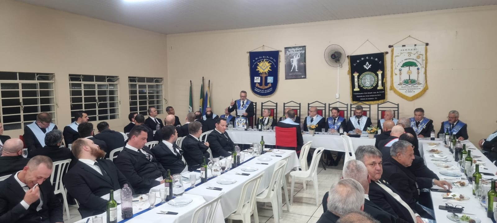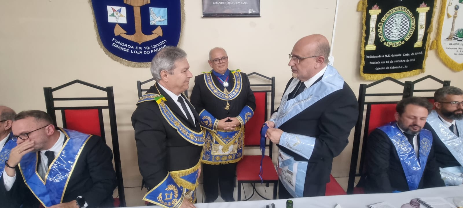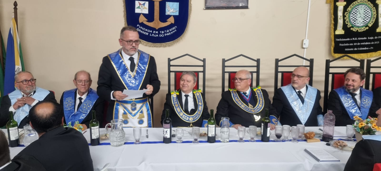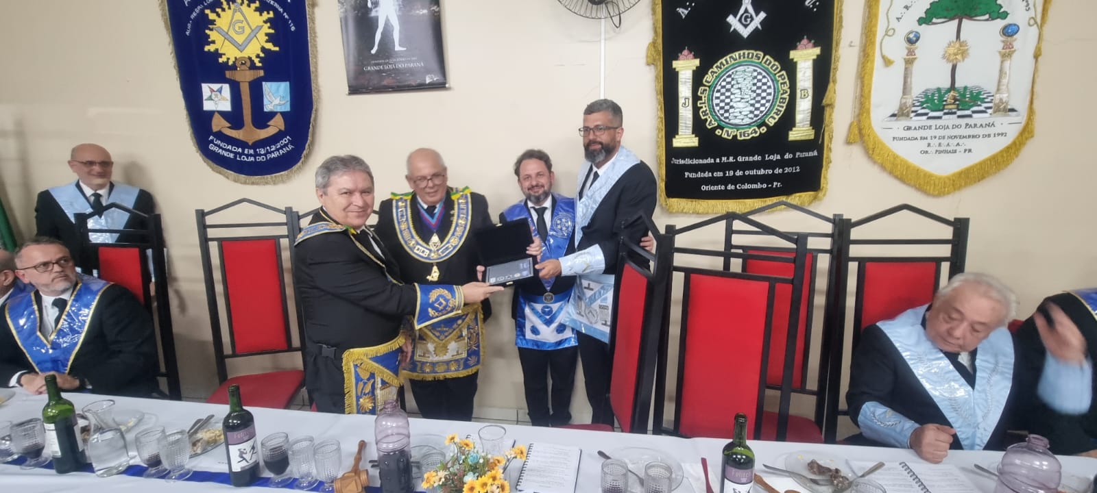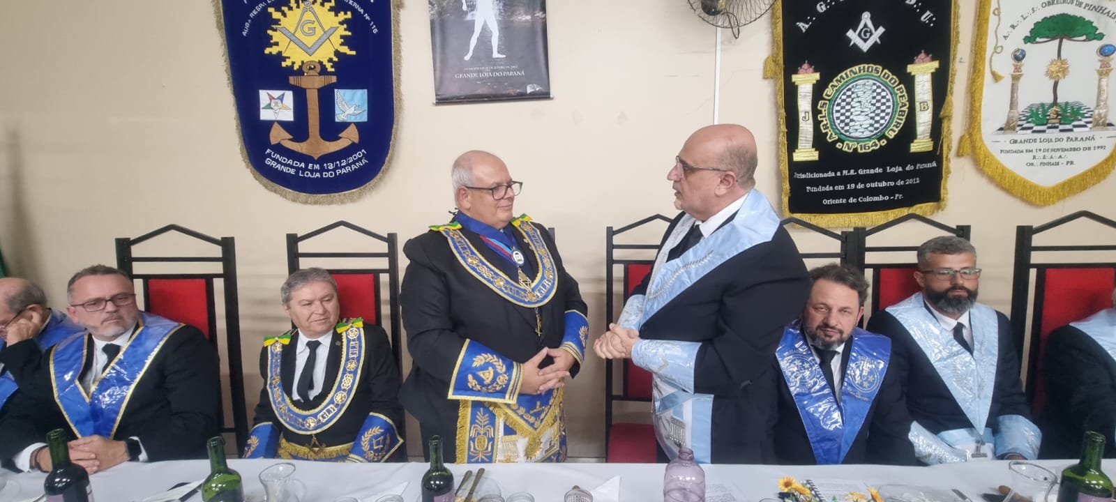 A sessão, que foi realizada no Templo da ARSL Obreiros de Pinhais nº95, foi presidida por seu Venerável Mestre, o Irmão Alexandre Abranches Kuhas. Durante a segunda libação, o SGM agradeceu o brinde, enalteceu a iniciativa do Eminente Delegado Irmão Clelsion Roderley Gazabin e dos Veneráveis Mestres, tendo conclamado que permaneçamos em União, pois “Juntos e Unidos somos muito mais fortes”.