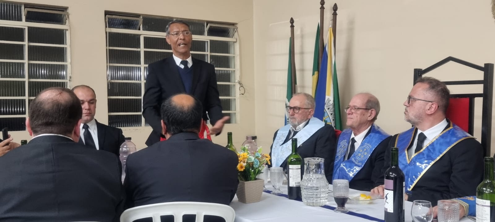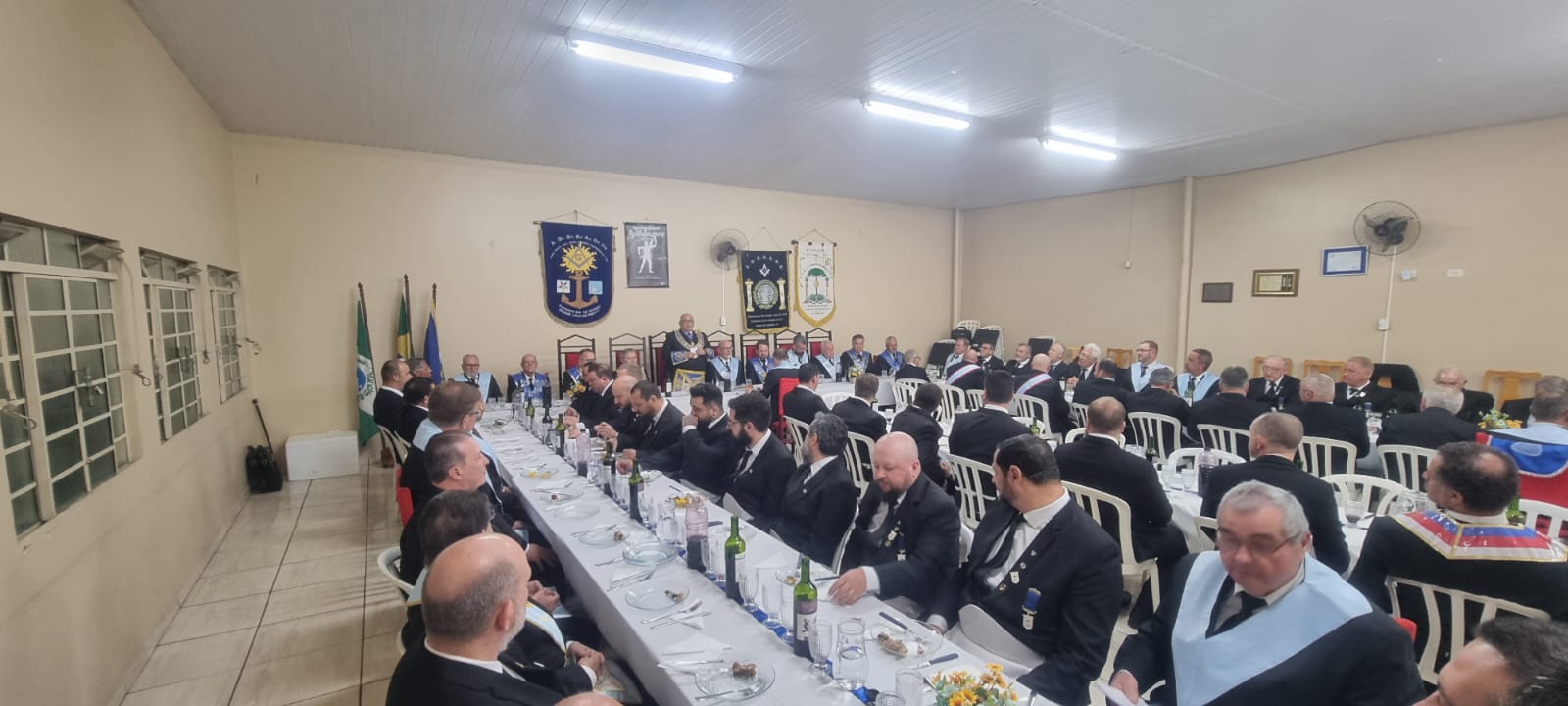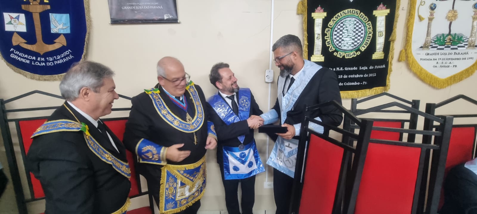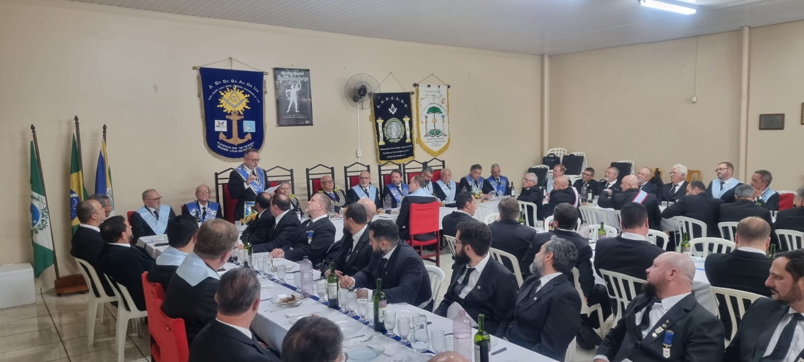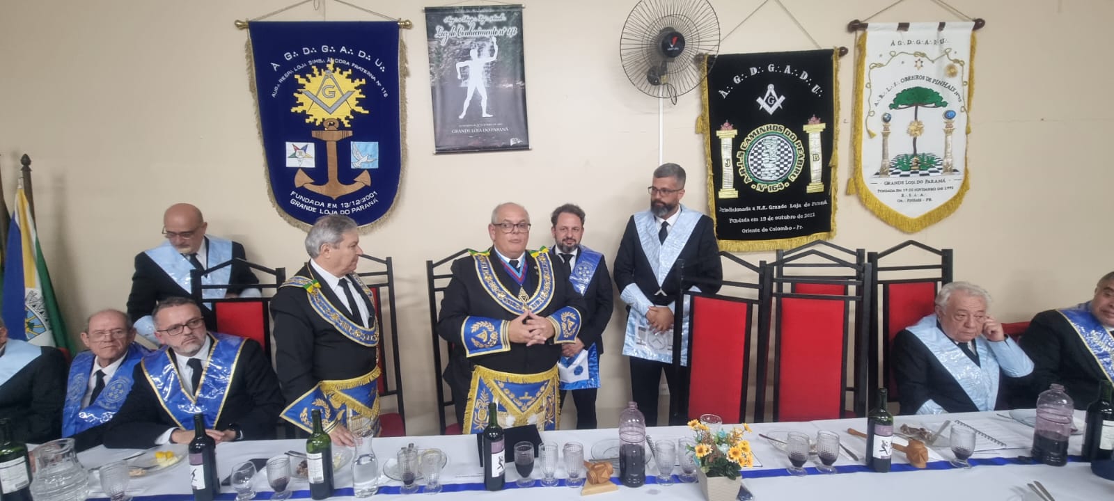 A sessão, que foi realizada no Templo da ARSL Obreiros de Pinhais nº95, foi presidida por seu Venerável Mestre, o Irmão Alexandre Abranches Kuhas. Durante a segunda libação, o SGM agradeceu o brinde, enalteceu a iniciativa do Eminente Delegado Irmão Clelsion Roderley Gazabin e dos Veneráveis Mestres, tendo conclamado que permaneçamos em União, pois “Juntos e Unidos somos muito mais fortes”.