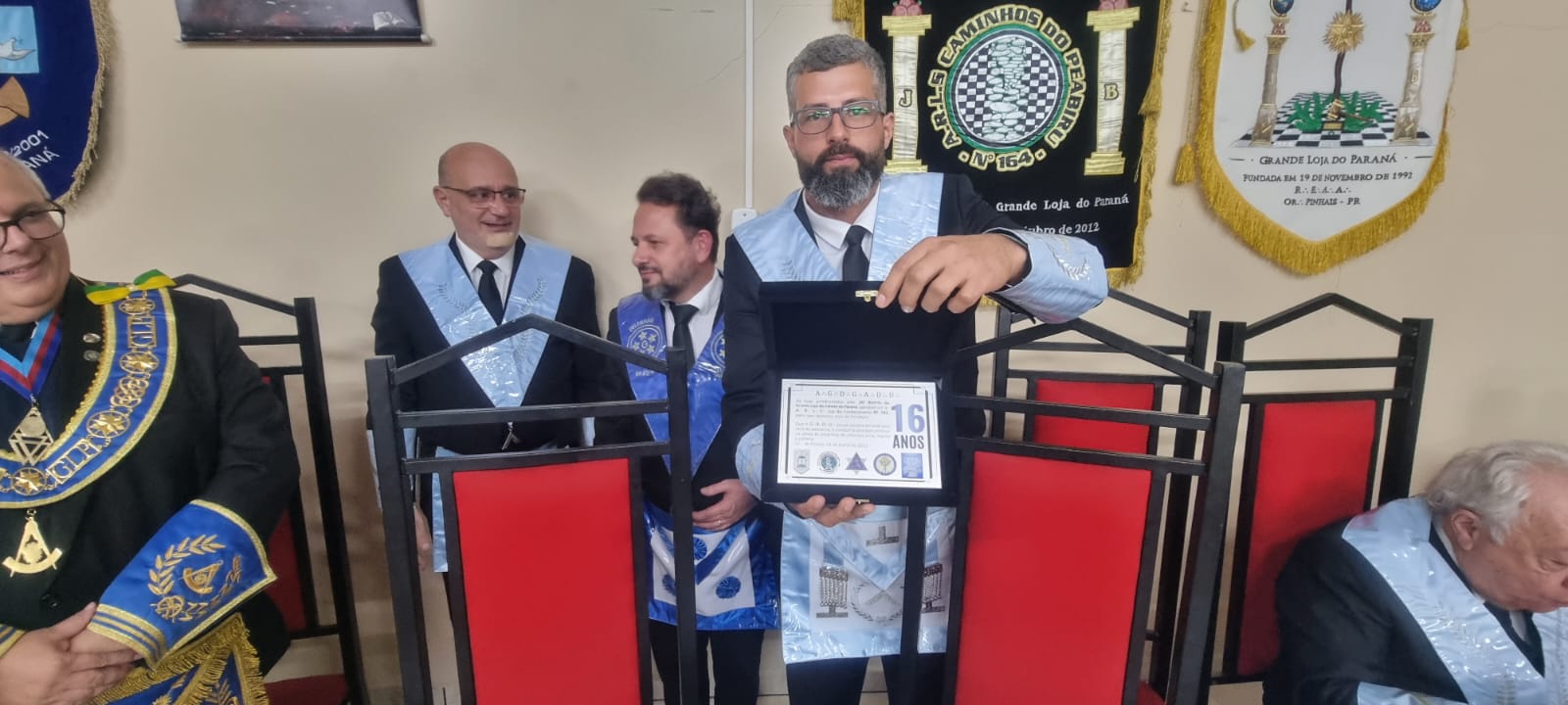 Ainda durante o evento, o SGM entregou ao Irmão Agenor Fernandes de Lima Filho, Venerável Mestre da ARLS Luz do Conhecimento nº143, pelos 16 anos de fundação da Loja.