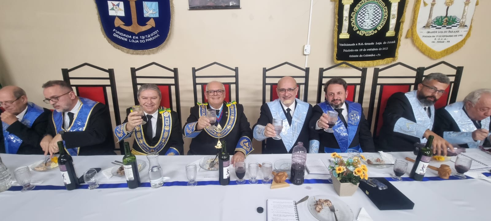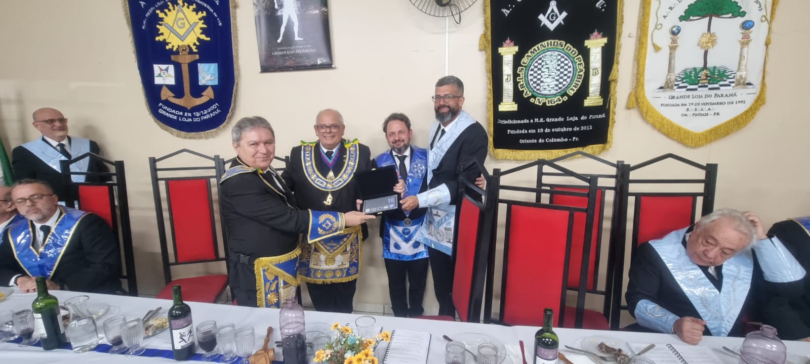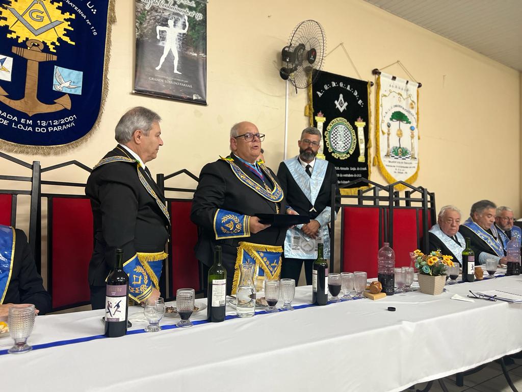 O Sereníssimo Grão-Mestre da Grande Loja Maçônica do Estado do Paraná, Irmão Marco Antônio Corrêa de Sá e o Eminente Deputado do Grão-Mestre, Irmão José de Faria, participaram do Banquete Ritualístico organizado pelas Lojas integrantes do 26º Distrito Maçônico no dia 22 de junho.