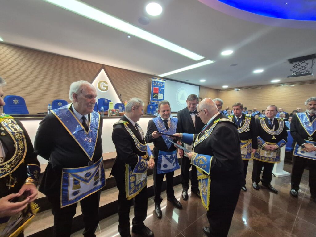 Aproveitando o momento de união e congraçamento, o Sereníssimo Grão-Mestre, Irmão Marco Antônio Corrêa de Sá, utilizou desta última sessão do ano para prestar agradecimentos aos Irmãos da jurisdição, delegados, ministros, grandes oficiais e, principalmente, aos Veneráveis Mestres e aos funcionários da GLP, explicando que na próxima sessão da Assembleia ocorrerá a posse no futuro Grão-Mestre da GLP, o Irmão José de Faria.