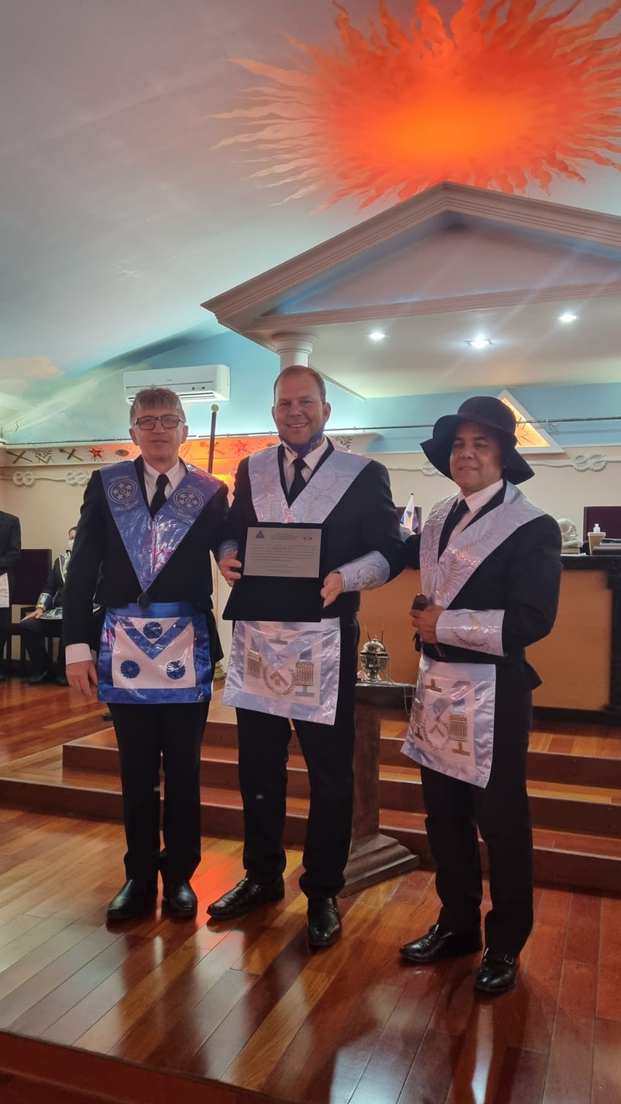 Na ocasião, o Past Master Clayton Bona, foi agraciado com uma placa de homenagem em reconhecimento a sua gestão, por ter conduzido os trabalhos da Loja, de forma empreendedora, superando os desafios impostos pela pandemia da COVID-19.