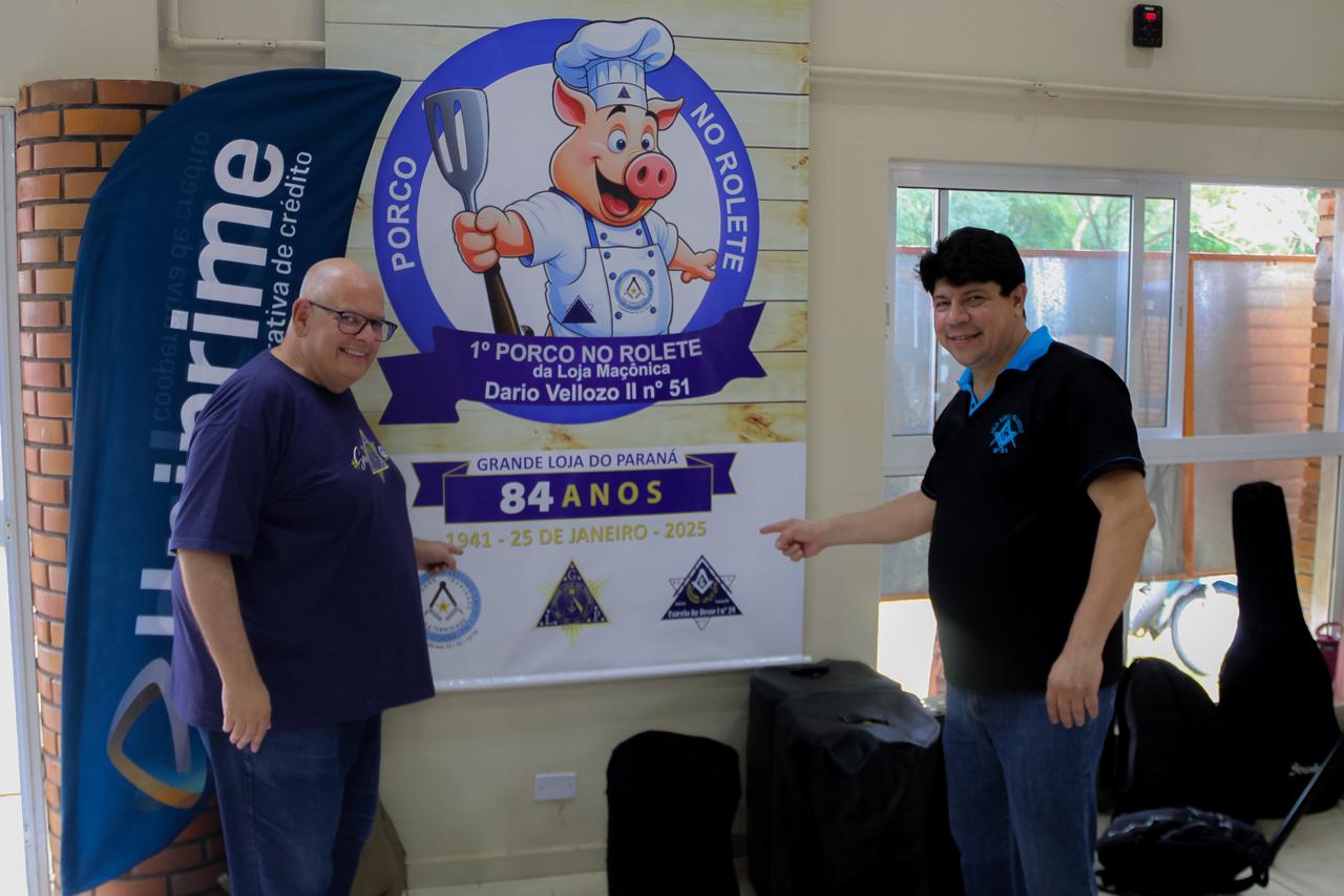 No dia 25 de janeiro a ARLS Dario Vellozo II Nº 51, realizou festividade para arrecadar fundos e comemorar os 84 anos da Grande Loja do Paraná (GLP), com o 1º Porco no Rolete da Loja. A iniciativa contou com a colaboração da ARLS Estrela do Oeste I Nº 24, e o apoio das demais Lojas do 10º Distrito Maçônico, representado por seus Veneráveis Mestres, demais Irmãos e Cunhadas.
