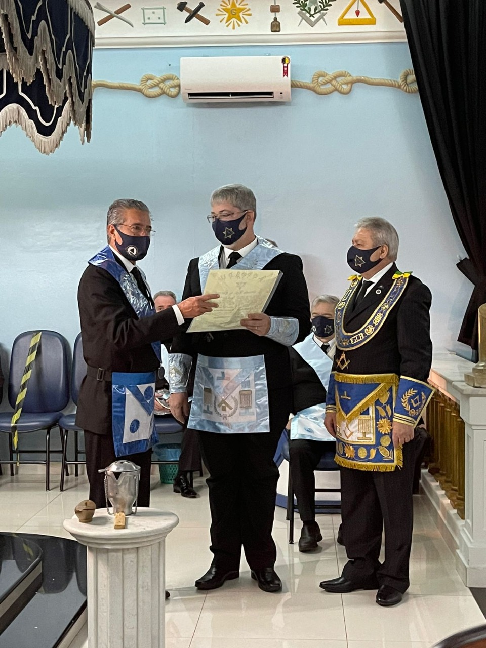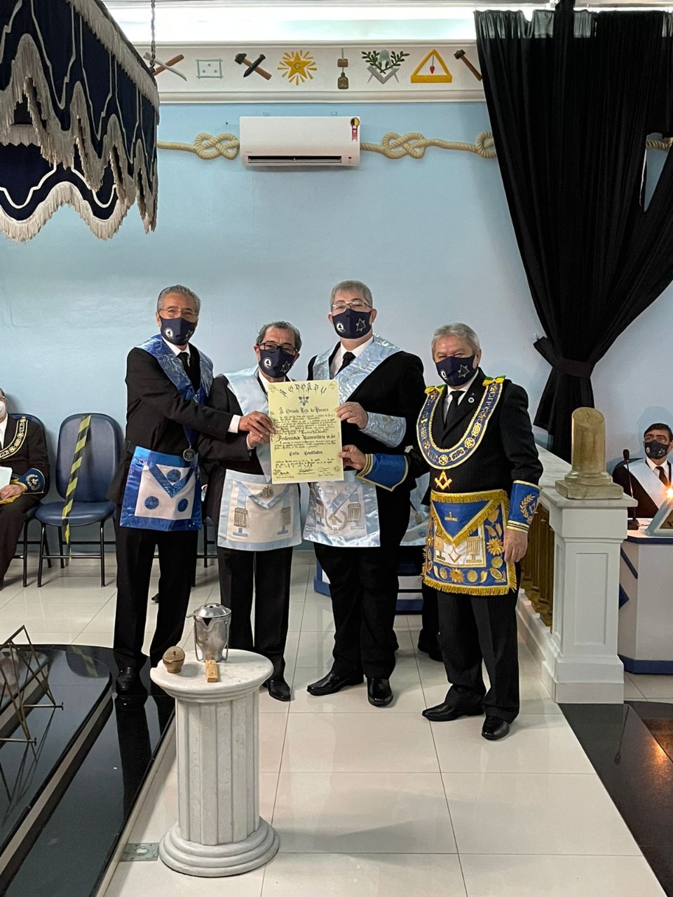 O Sereníssimo Grão-Mestre esteve acompanhado do Eminente Deputado, Irmão José de Faria, do Past Grão-Mestre Irmão João Carlos Silveira, Eminentes Delegados, Grandes Oficiais, Veneráveis Mestres, Grande Inspetor Litúrgico da 5ª Região, Irmão José Aparecido Lourenço, e a solenidade ocorreu no templo da ARLS Paz e Amor n. 36.
