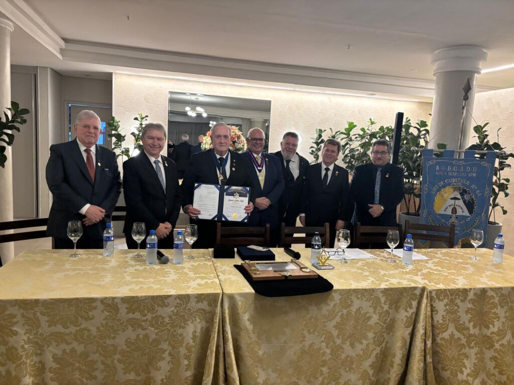 O Venerável Mestre Paulo Antônio Veríssimo Ribeiro, que presidiu a solenidade, homenageou o Sereníssimo Grão-Mestre, Marco Antônio Corrêa de Sá com a Comenda Edelsio Rivelino Alves Júlio, concedida pela Luz de Curitiba. Em retribuição, o Grão-Mestre presenteou a Loja com uma placa comemorativa e concedeu a Comenda Gralha Azul ao Irmão José Roberto Trautwein, em reconhecimento a seus 47 anos e 9 meses de efetiva atividade maçônica.