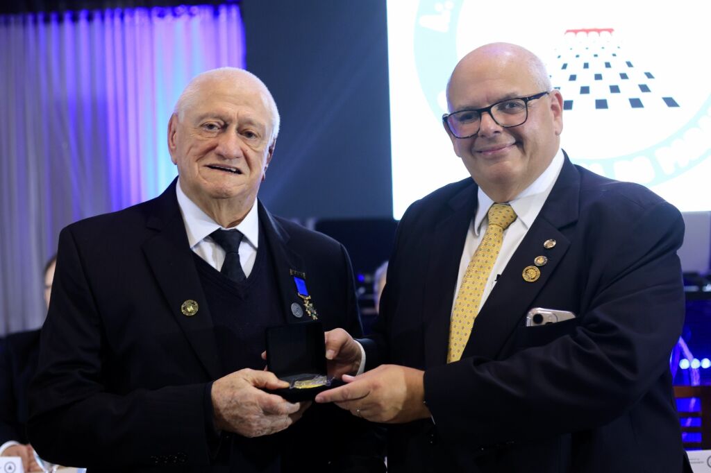 A ARLS Benjamin Constant Nº39, do Oriente de Pato Branco, completou 50 anos de história no dia 01, com a celebração acontecendo no dia seguinte. Na ocasião, o Sereníssimo Grão-Mestre, Marco Antônio Corrêa de Sá e sua comitiva, foram recepcionados na Sociedade Rural de Pato Branco com um jantar que contou com a entrega de uma placa comemorativa ao Venerável Mestre, Irmão Marcos Colla em razão ao Jubileu de Ouro da Loja.