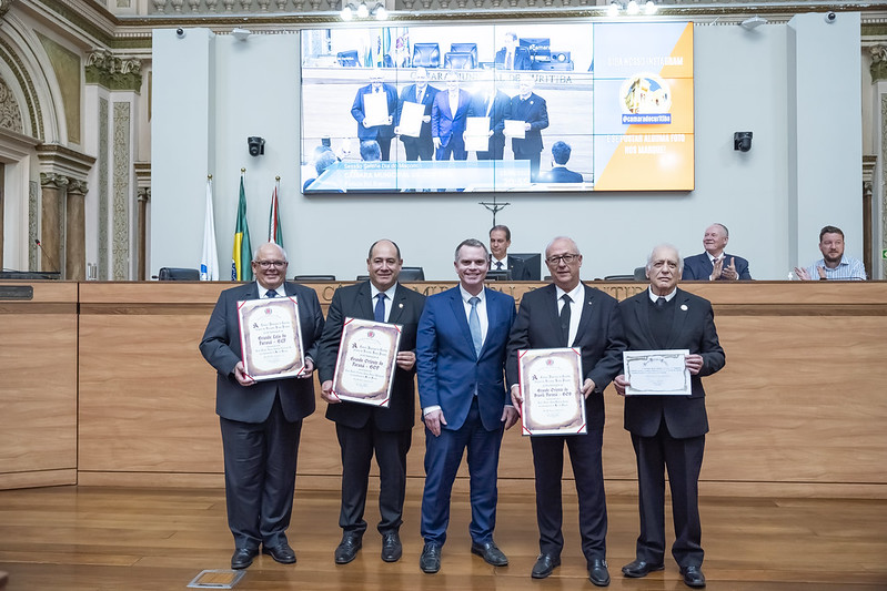 A Câmara Municipal de Curitiba (CMC) realizou uma sessão em homenagem ao Dia do Maçom nesta terça-feira, dia 22 de agosto, com a presença das principais lideranças da Maçonaria no Paraná, sendo eles os Grão-Mestres da Grande Loja Maçônica do Estado do Paraná (GLP), Marco Antônio Corrêa de Sá; do Grande Oriente do Paraná (GOP), Cristian Adrian Flores Maldonado; e do Grande Oriente do Brasil/Paraná (GOB-PR), Paulo Roberto Socher.