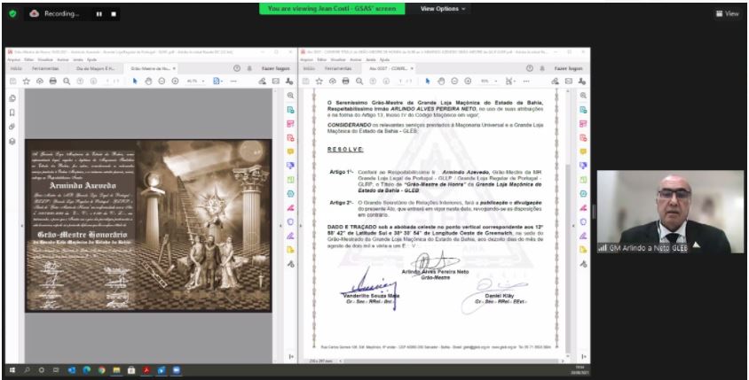 Durante o evento, o Grão-Mestre da Grande Loja Maçônica do Estado da Bahia (GLEB), Irmão Arlindo Alves Pereira Neto, concedeu o Título de Grão-Mestre de Honra ao Grão-Mestre Português, Irmão Arlindo Azevedo, em agradecimento e reconhecimento aos esforços em prol da Maçonaria.