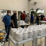 “Assim, começamos a nos organizar para fazermos as marmitas”, lembra Elizabeth. A produção desde final de semana é a terceira a ser doada e o volume de alimento tem crescido. Ela conta que da primeira vez foram feitas 50 marmitas, na segunda 70 e agora estamos fazendo 50 quilos de alimentos, o que corresponderá há 100 marmitas. O espaço que estão utilizando para a produção foi cedido, a Loja adquiriu um fogão industrial para auxiliar e os mantimentos são custeados pelas próprias cunhadas que reúnem os recursos para a ação. “Nossa estimativa é a de que possamos doar as marmitas duas vezes por mês, pelo menos. Não fazemos mais por conta de estrutura”, conta a coordenadora.