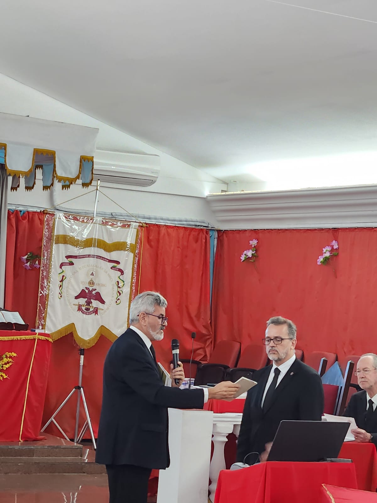 “Hoje é mais um dia de festa, como diz um mestre bem conhecido entre nós: viemos aqui para sermos felizes, nos divertir e comemorar a oportunidade da vida em fraternidade, em local apropriado para sermos felizes e tornarmos felizes a humanidade. Hoje, comemoramos o Dia do Maçom mais uma vez, em um hino ao Grande Arquiteto do Universo, com alegria e fazendo o que mais gostamos, estudando Maçonaria”, disse o Irmão Manif Antônio Torres Julio, Membro Efetivo do Supremo Conselho do Grau 33 do REAA e Soberano Grande Inspetor Litúrgico da 1ª Região Litúrgica do Paraná, em referência às duas palestras da Ordem do Dia, que versaram sobre ensinamentos maçônicos, proferidas pelos Irmãos Nilson Marchioro e Cristiano Schmidt.