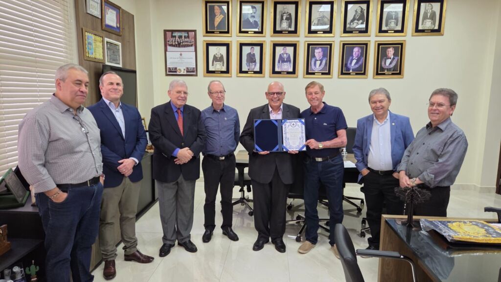 Dando continuidade às celebrações dos 85 anos da Grande Loja Maçônica do Estado do Paraná, ocorreu, no dia 31 de março de 2026, no Gabinete do Grão-Mestrado, que o Sereníssimo Grão-Mestre Irmão José de Faria, acompanhado do Eminente Deputado do Grão-Mestre, Irmão Glaucio Antônio Pereira; realizaram a entrega do Diploma de Grão-Mestre ao Irmão Marco Antônio Corrêa de Sá, referente ao mandato do período de 2020-2023.