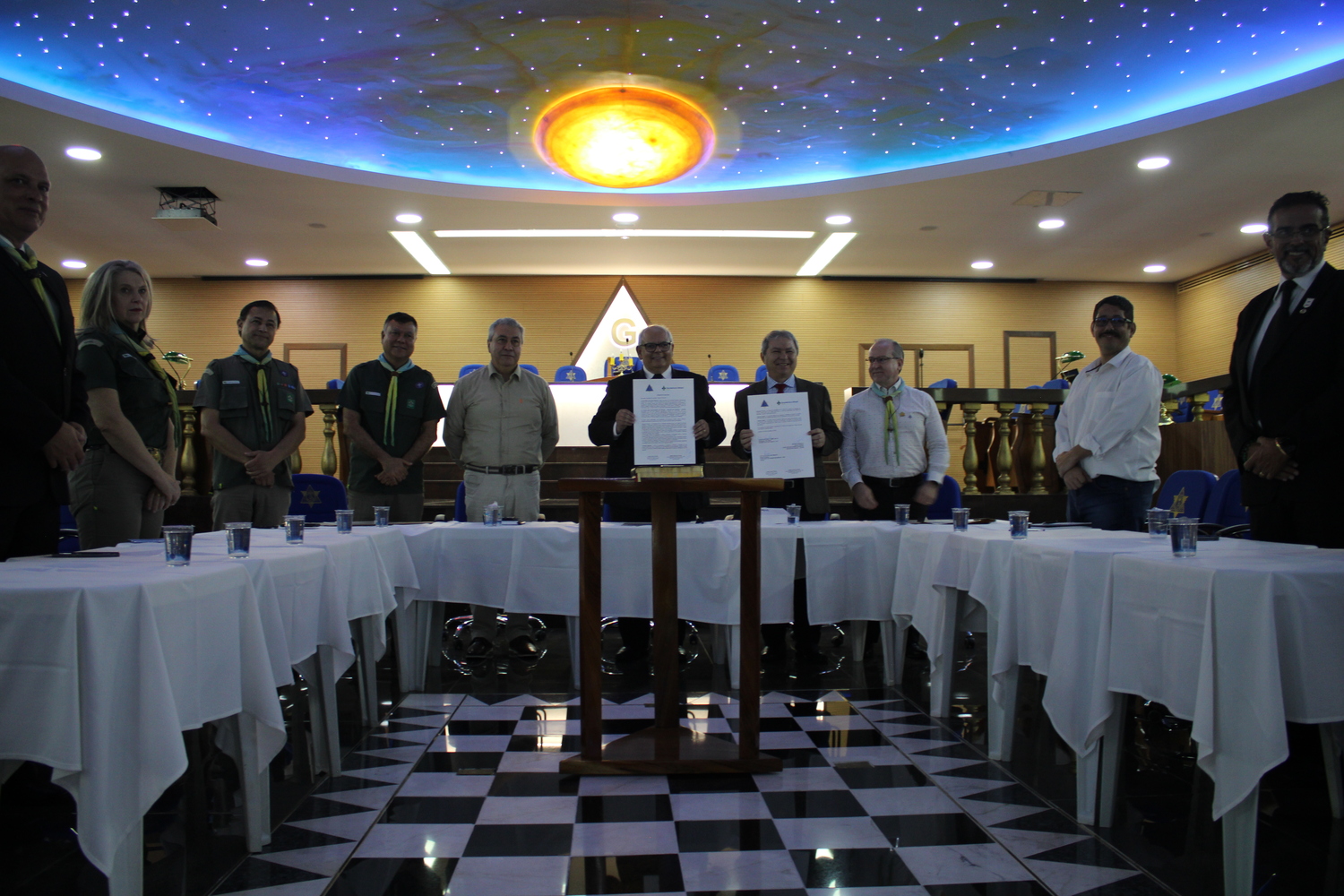 A Grande Loja do Paraná (GLP) vai auxiliar na difusão dos ideais do Movimento Escotista e incentivar que Lojas Maçônicas da jurisdição apoiem a criação de Grupos Escoteiros. Estes são alguns dos detalhes do termo de parceria entre a GLP e a União dos Escoteiros do Brasil (UEB), assinado nesta quinta-feira (8) pelo Sereníssimo Grão-Mestre, Irmão Marco Antônio Corrêa de Sá, pelo diretor-presidente UEB, Ivan Alves do Nascimento, e pelo diretor-presidente da UEB-PR, Rosano Ouriques.