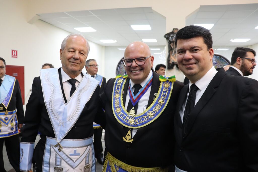 O Grão-Mestre está sendo acompanhado nas cerimônias pelo Deputado do Grão-Mestre e Grão Mestre eleito Irmão José de Faria, pelo Past Deputado do Grão-Mestre, Irmão José Fernando de Paula, além de Delegados, Ministros do Superior Tribunal Maçônico, Grandes Oficiais e demais Mestres Instalados das Lojas.