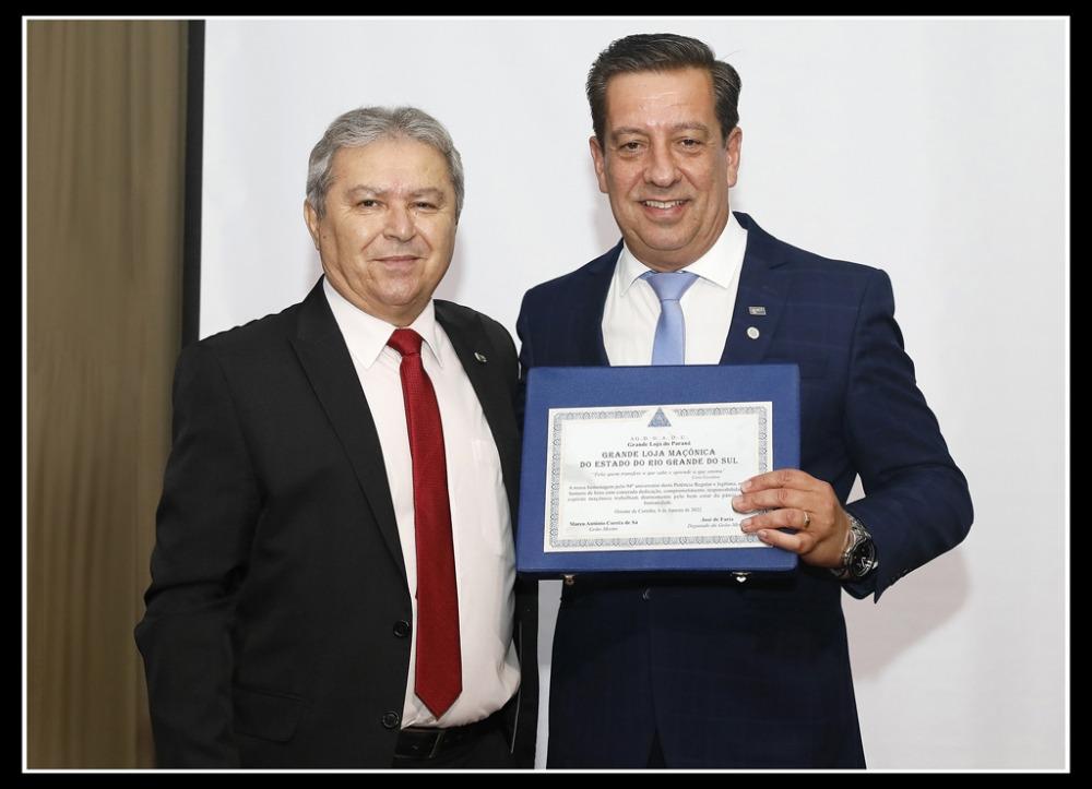 O Eminente Deputado do Grão-Mestre, Irmão José de Faria, esteve no oriente de Porto Alegre no último dia 8 de janeiro para representar a Grande Loja do Paraná (GLP) nas comemorações dos 94 anos de fundação da Grande Loja Maçônica do Estado do Rio Grande do Sul (GLMERGS). A festividade, que ocorreu na Sociedade Libanesa, contou ainda com a presença de diversas autoridades da maçonaria regional das três potencias regulares, além de Grão-Mestres de outros estados da federação.