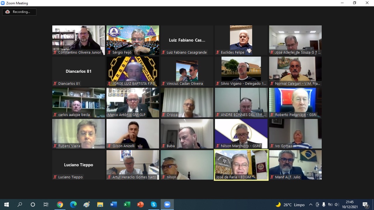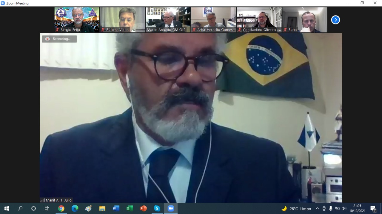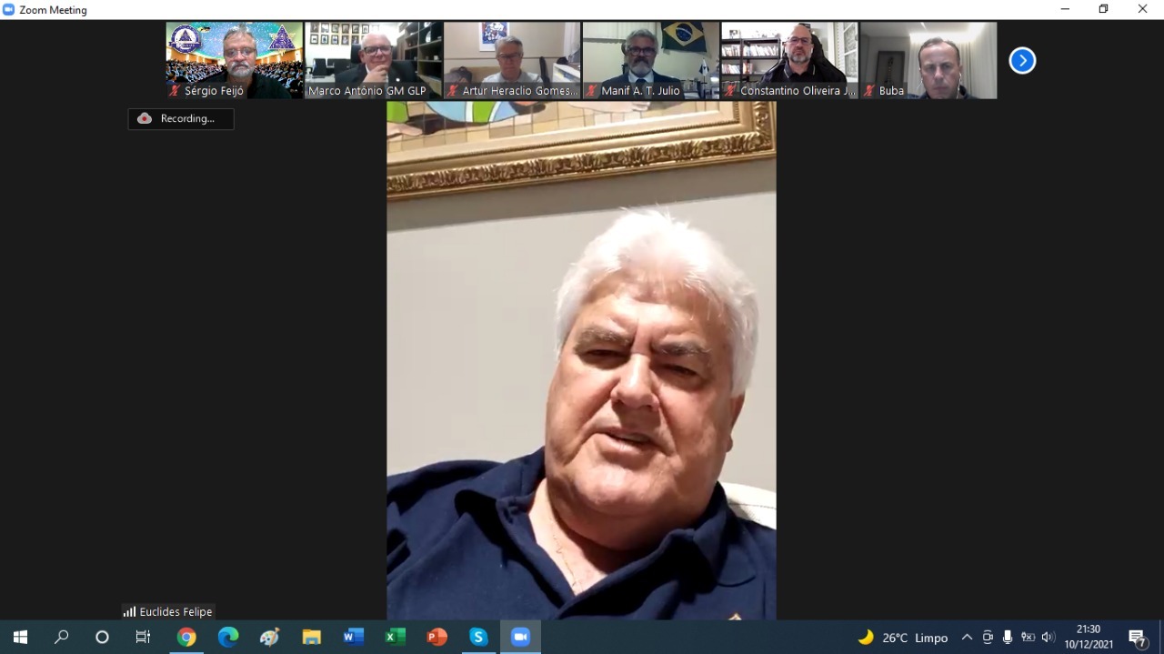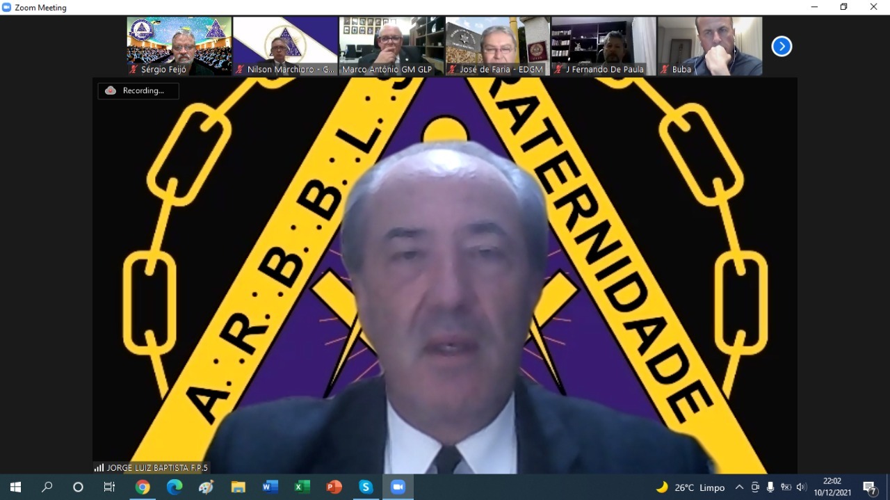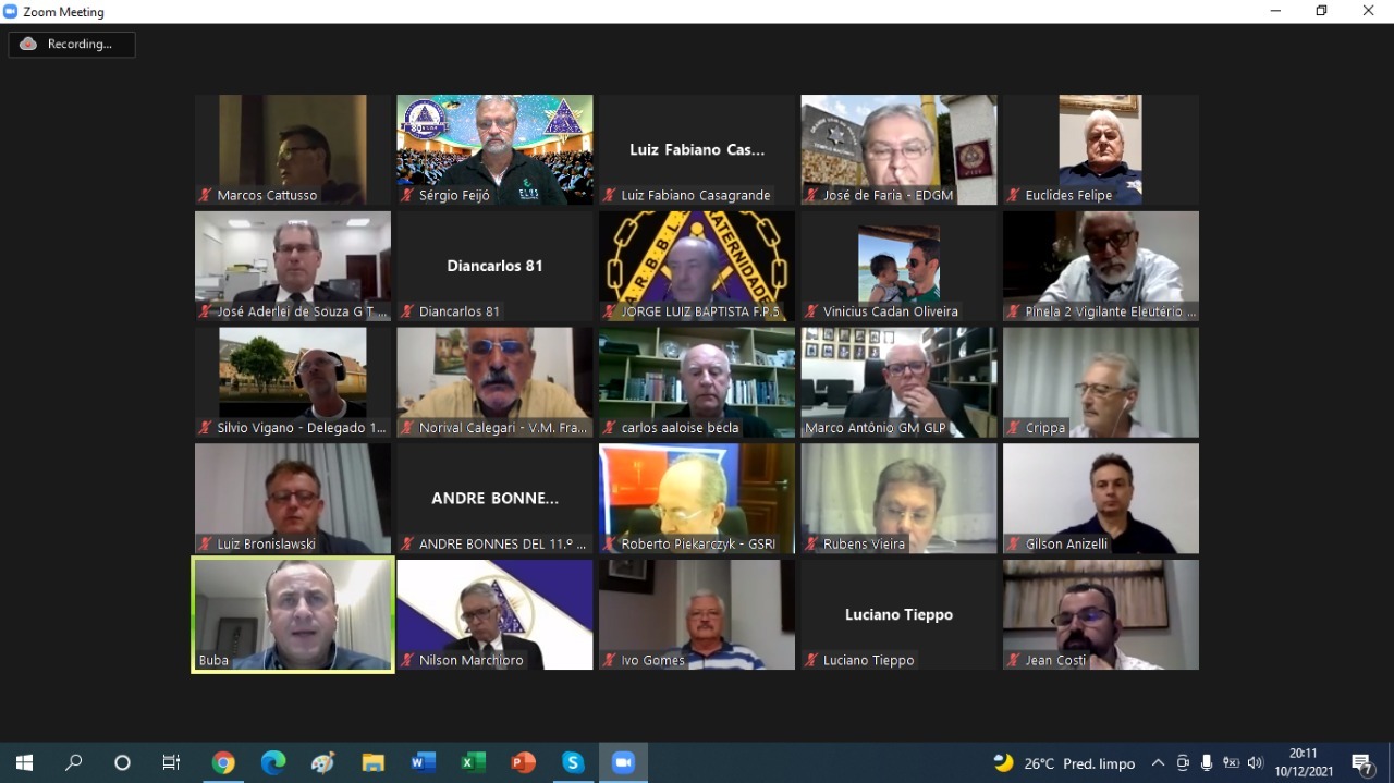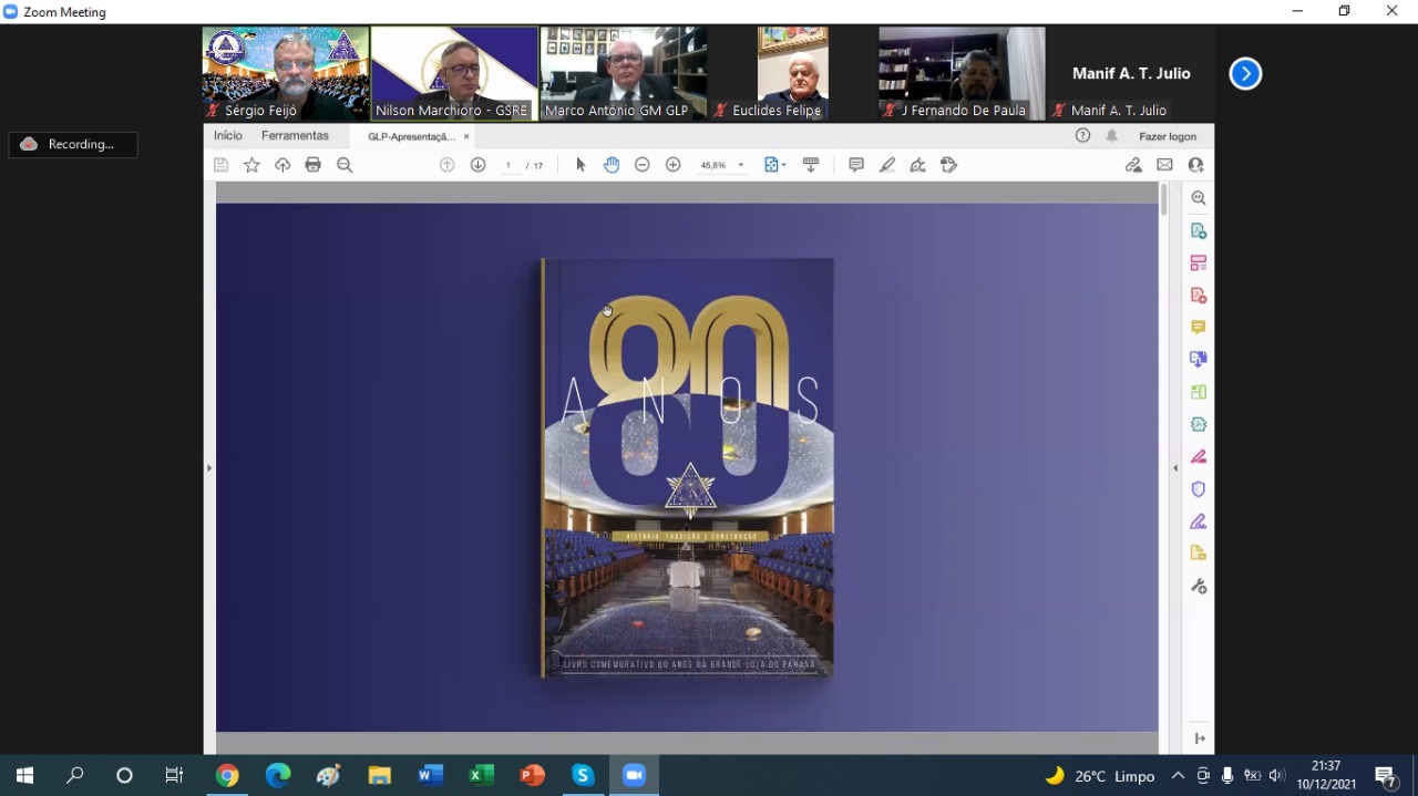 A Grande Loja do Paraná (GLP) realizou a quarta e última Assembleia Geral Ordinária Legislativa de 2021 nessa sexta-feira (10), no formato virtual. A data foi marcada pela apresentação do relatório resumido de atividades do Grão-Mestrado em 2021, pela apresentação da previsão orçamentária para 2022 e, ainda, pela apresentação do livro comemorativo e alusivo aos 80 anos da GLP.
