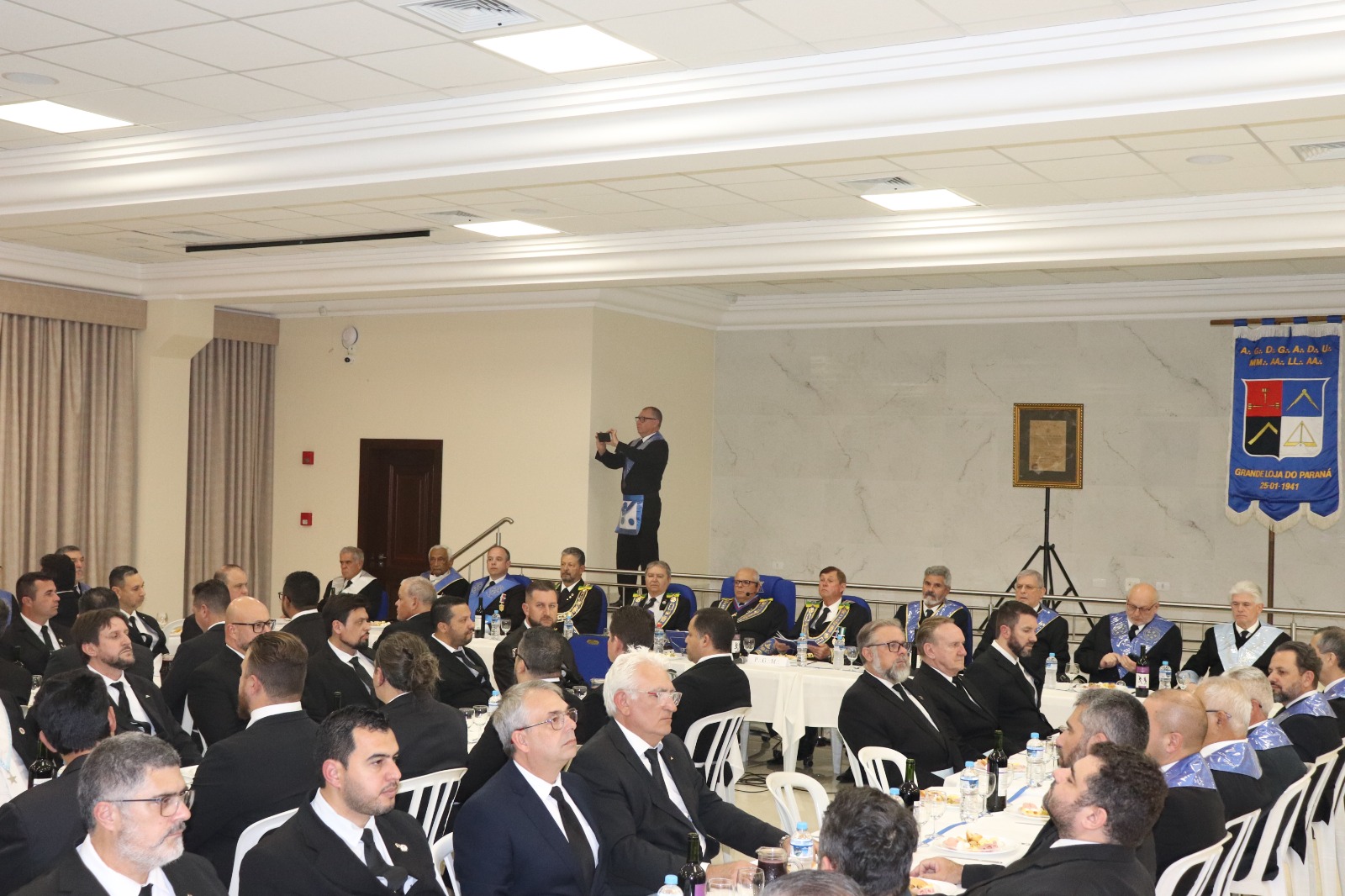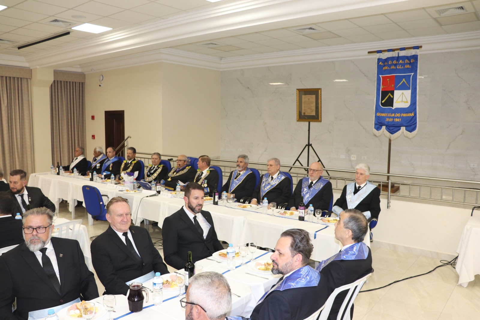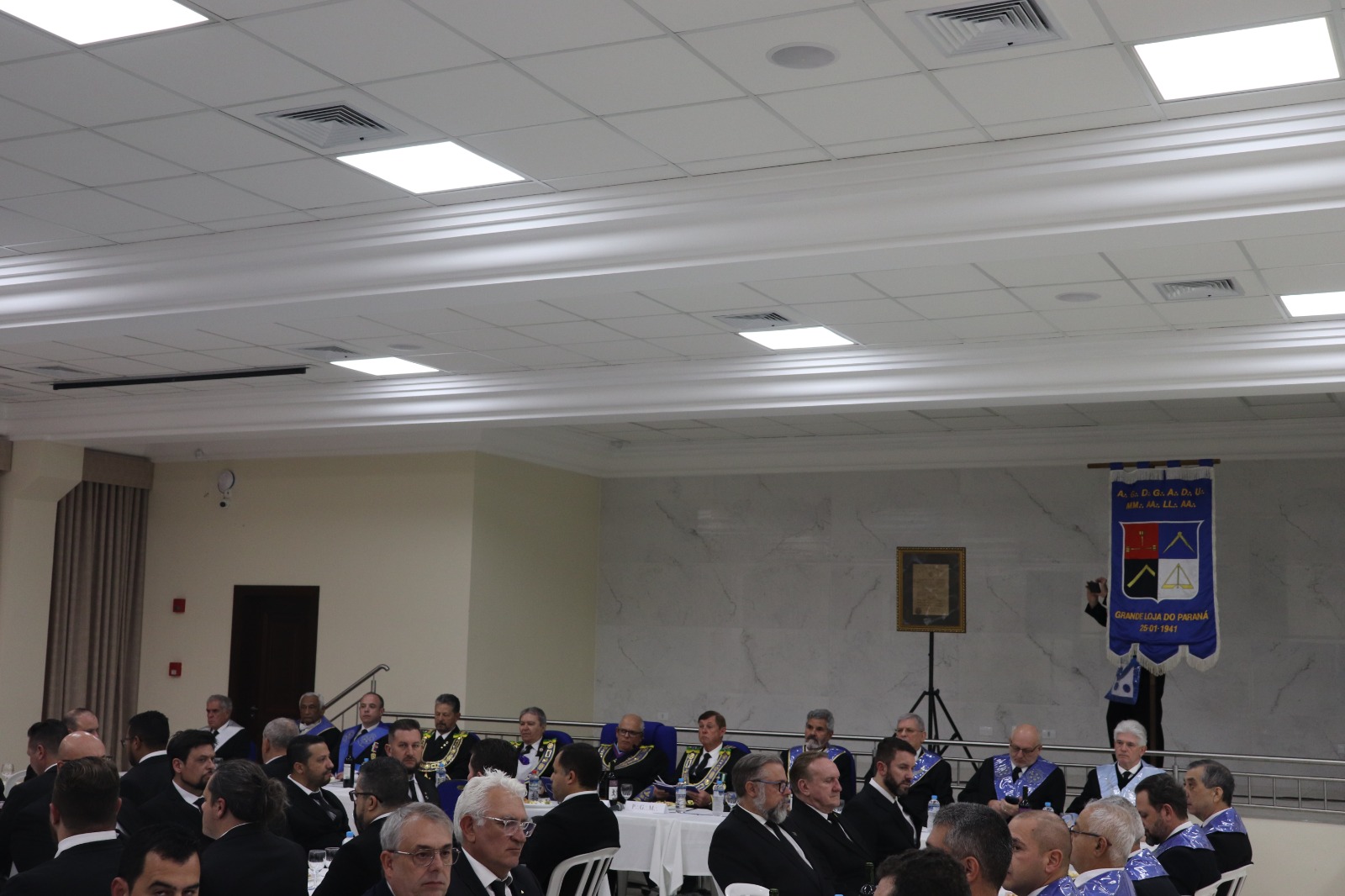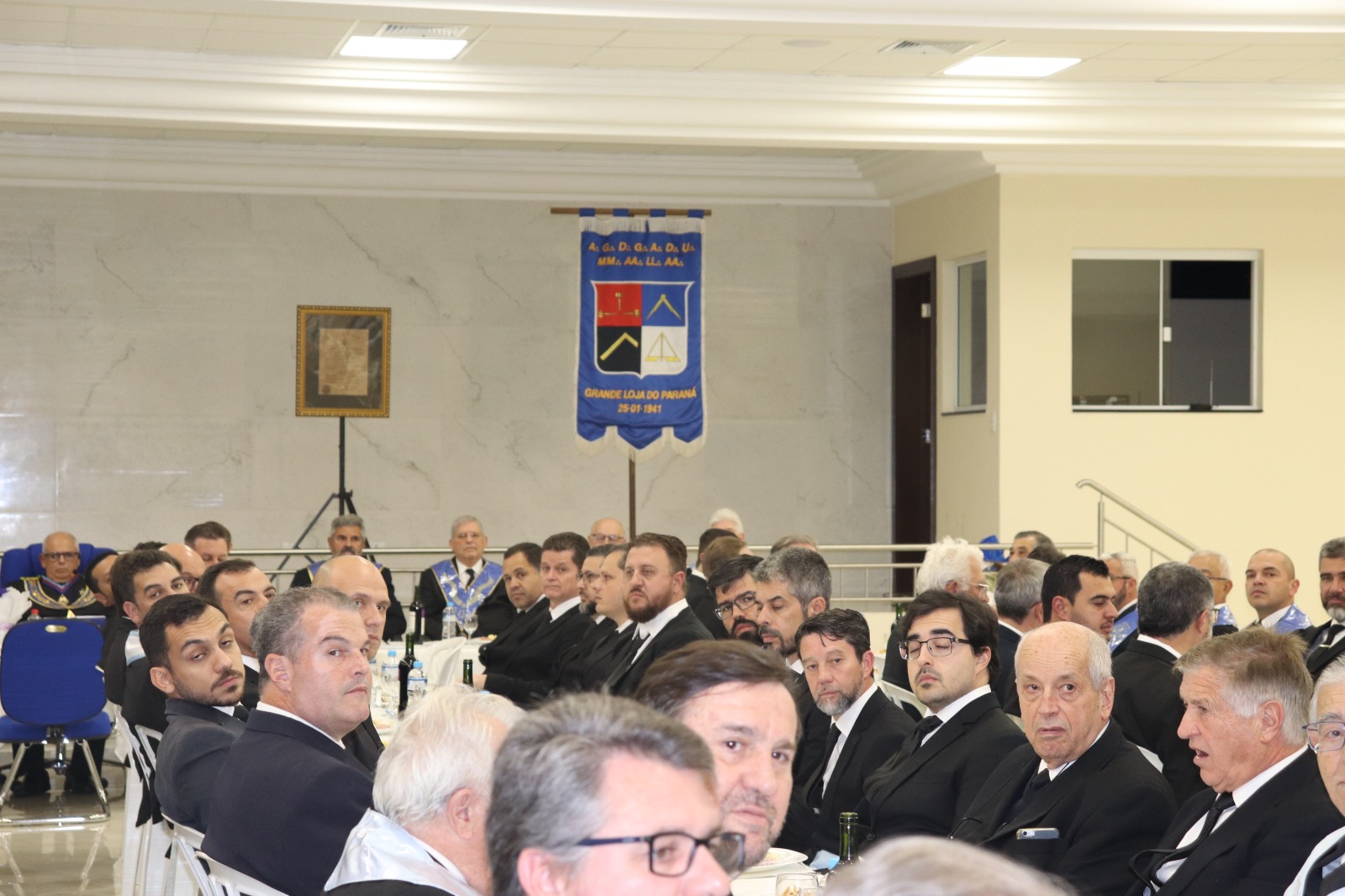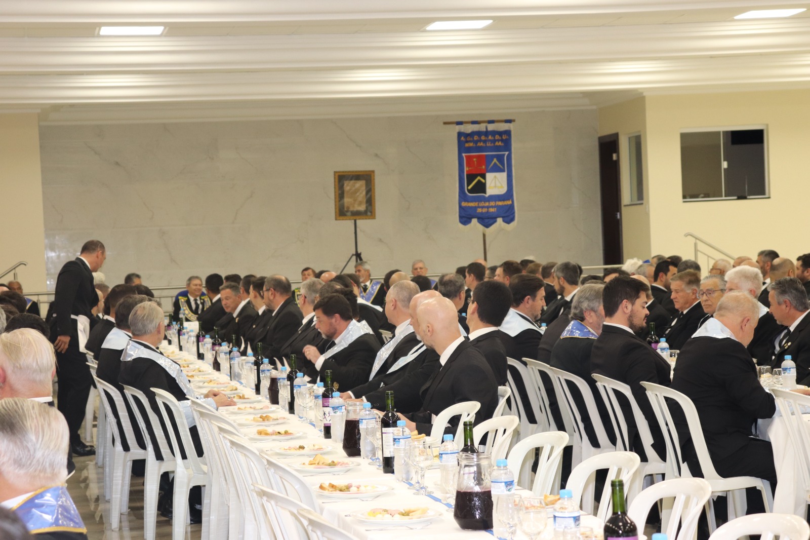 A Grande Loja do Paraná realizou Banquete Ritualístico nessa última sexta-feira (23), em sua sede localizada em Curitiba. A sessão contou com a presença de aproximadamente 200  irmãos e foi presidida pelo Sereníssimo Grão-Mestre, Irmão Marco Antônio Corrêa de Sá, tendo lembrado que a Maçonaria se perfaz através de suas Lojas e do trabalho contínuo dos Irmãos em aprender a preparar, praticar e fortalecer o cimento místico da Fraternidade, argamassa desta Instituição que tanto amamos! Juntos e Unidos somos e seremos muito mais Fortes!!!