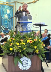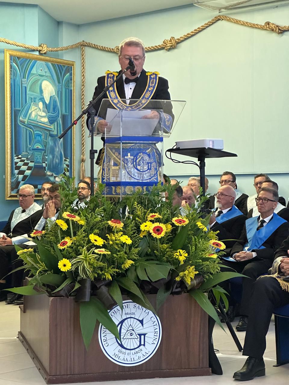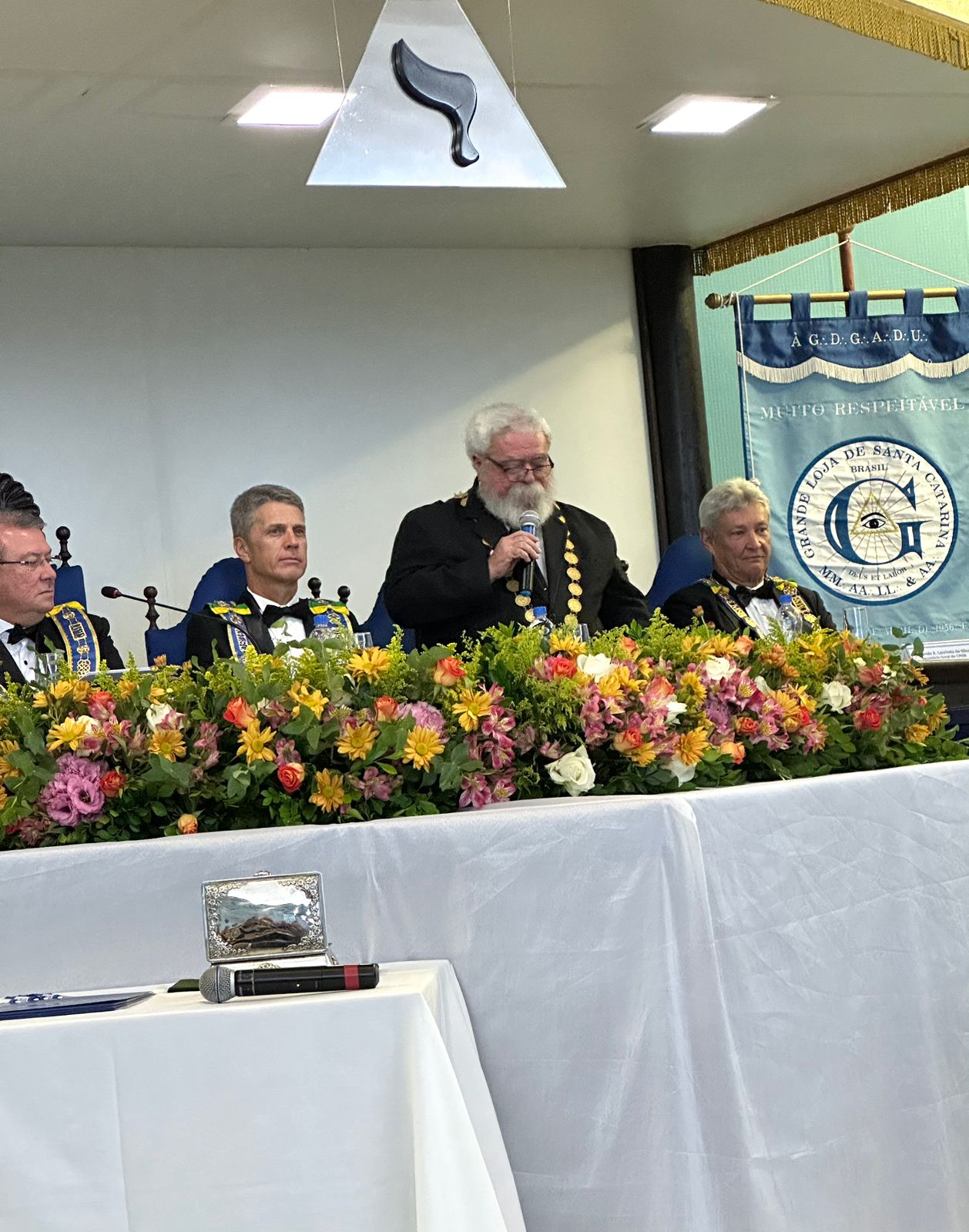 “É uma alegria muito grande participar da confraternização de aniversário da Grande Loja de Santa Catarina e de poder retribuir a presença na posse do Irmão Paulo e do Irmão Rafael. Desejamos sucesso absoluto aos nossos irmãos catarinenses”, disse o Irmão José de Faria, que contou ainda uma curiosidade: as únicas potências que atualmente trabalham com o cargo de Eminente Deputado do Grão-Mestre (EDGM) são as Grandes Lojas do Paraná e de Santa Catarina.