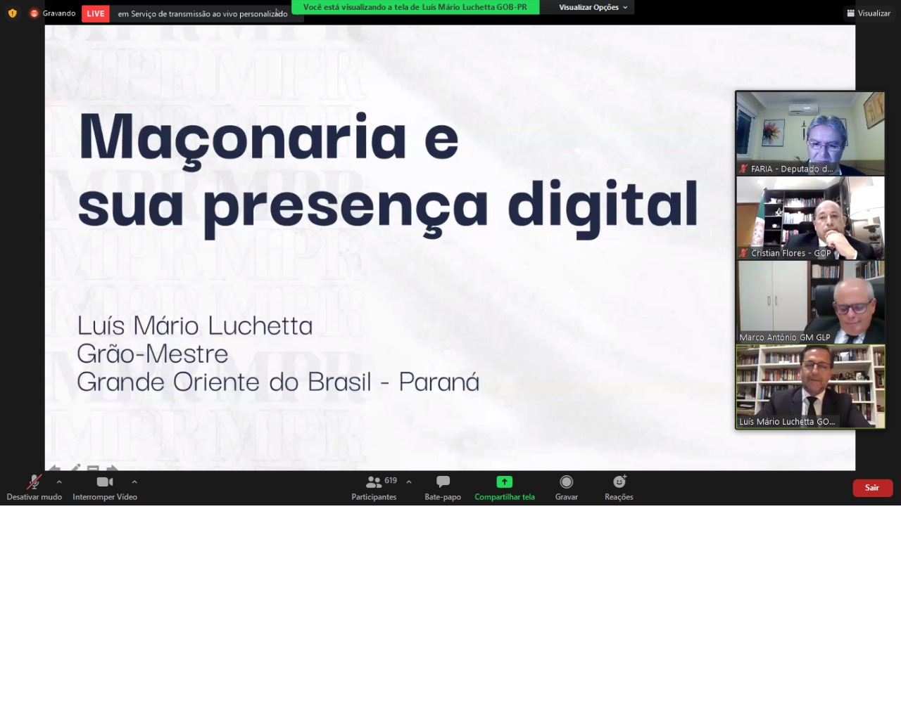 A apresentação do portal foi realizada em uma mesa redonda virtual com a participação superior a 650 membros da família maçônica da GLP, GOP e GOB-PR, que contou apresentações dos respectivos Grão Mestres, irmãos Marco Antônio Corrêa de Sá, Cristian Flores (GOP) e Luís Mário Luchetta (GOB-PR), abordando temas como a Maçonaria e seus Objetivos; O Maçom na Sociedade e Maçonaria e sua presença digital.  O evento contou com a mediação do irmão Maycon Coraza, que será o responsável pelo portal, e poderá ser revisto na íntegra em nossa Intranet, Videoteca – Eventos.