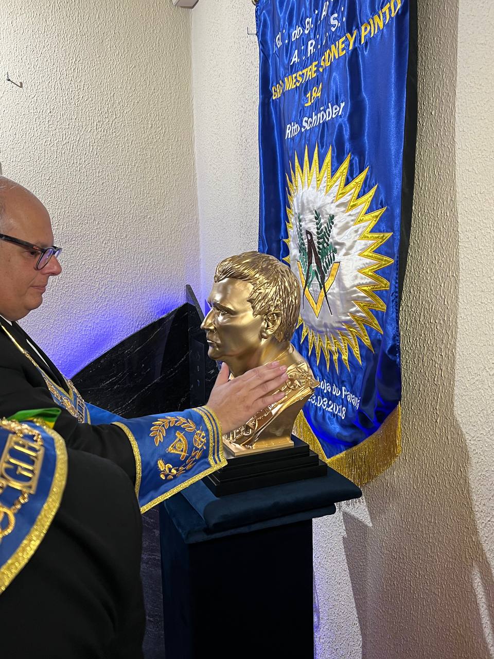 O Irmão Sergio Brum, obreiro ativo do quadro da ARLS Grão-Mestre Sidney Pinto, e afilhado do patrono homenageado, demonstrou satisfação em conseguir realizar este projeto em prol da preservação da história da Maçonaria no Paraná, da GLP e, em especial, ao amigo e Irmão Sidney.