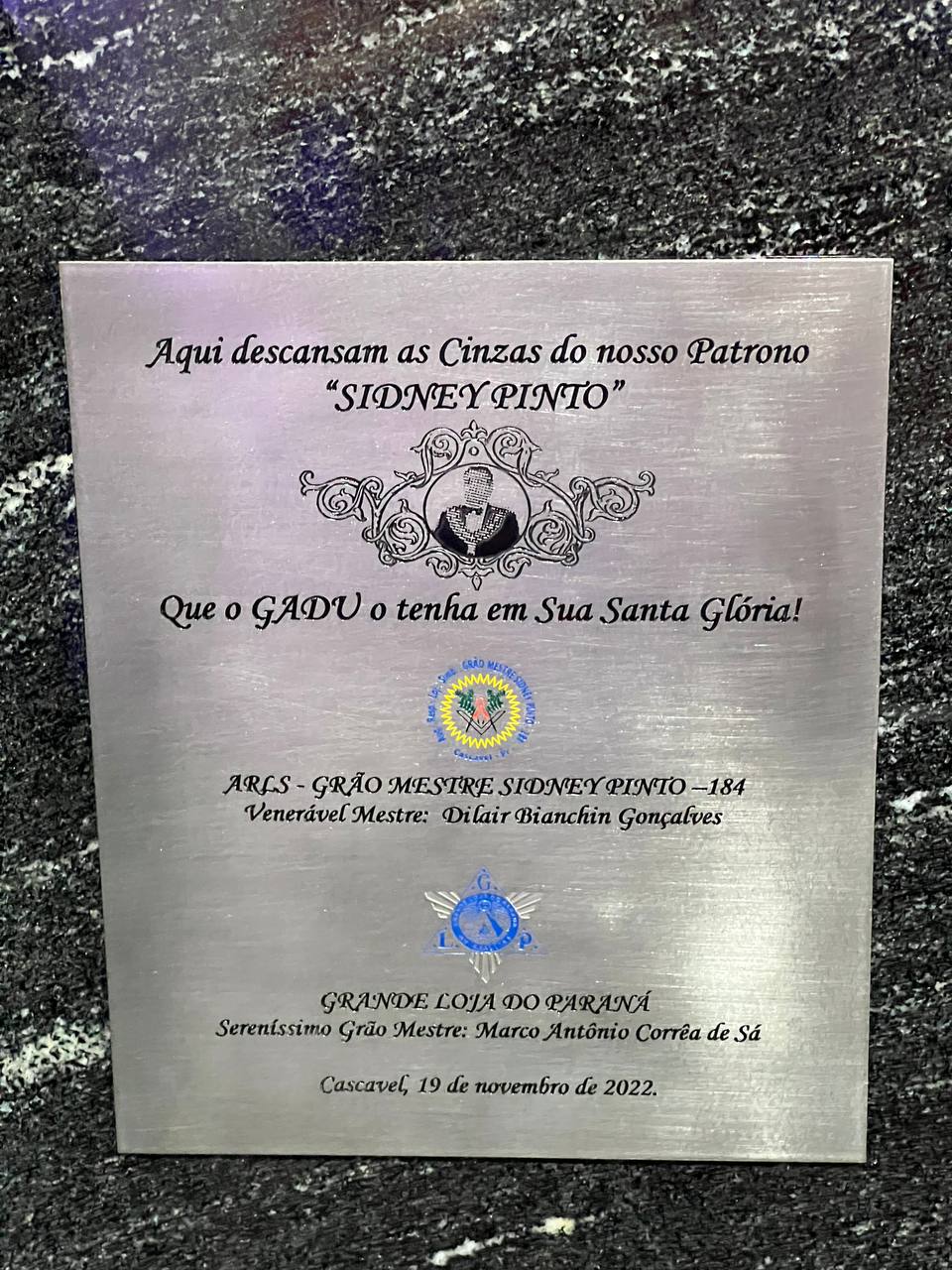 O saudoso Irmão Sidney Pinto, Past Grão-Mestre da Grande Loja do Paraná (GLP), recebeu homenagem póstuma por parte da ARLS Grão-Mestre Sidney Pinto nº 184 e da GLP, no Oriente de Cascavel, em meados de novembro.
