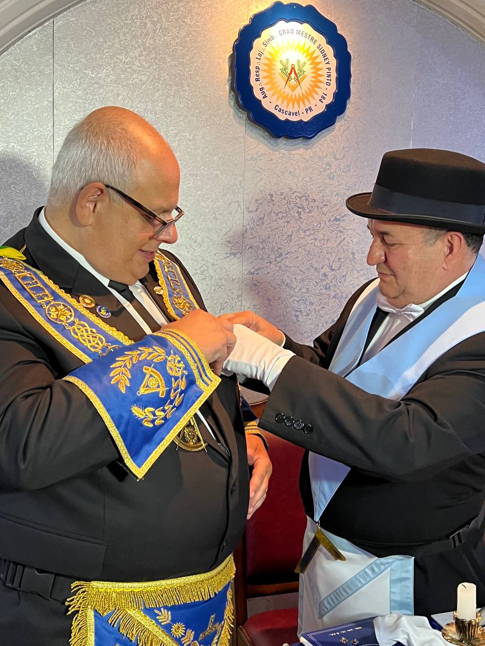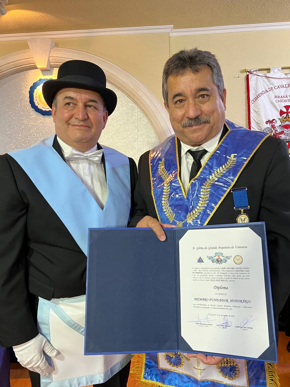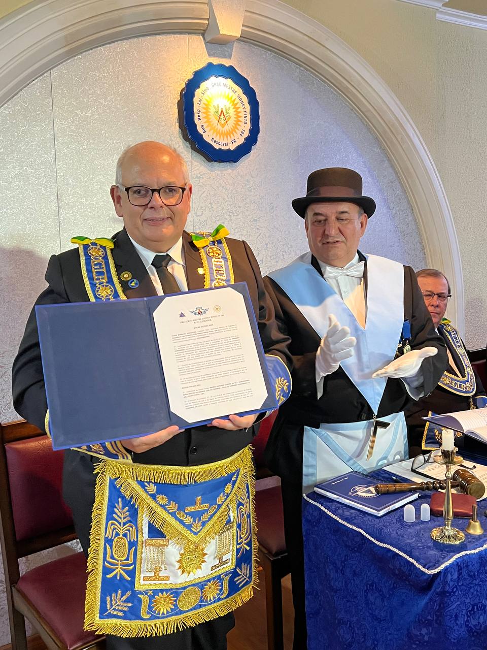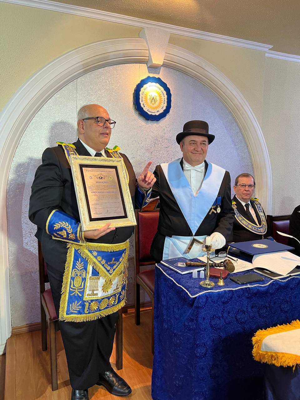 Na ocasião o Irmão Roberto Piekarczyk, representando o Soberano Grande Inspetor Litúrgico da 1 Região Litúrgica do Paraná e Membro Efetivo do Supremo Conselho do REAA, Irmão Manif Antonio Torres Julio, presenteou à Loja na pessoa do seu Venerável Mestre, Irmão Dilair Dalla Gonçalves, com a Comenda “Sidney Pinto”, instituída no âmbito daquela Região Litúrgica em homenagem ao saudoso Irmão.