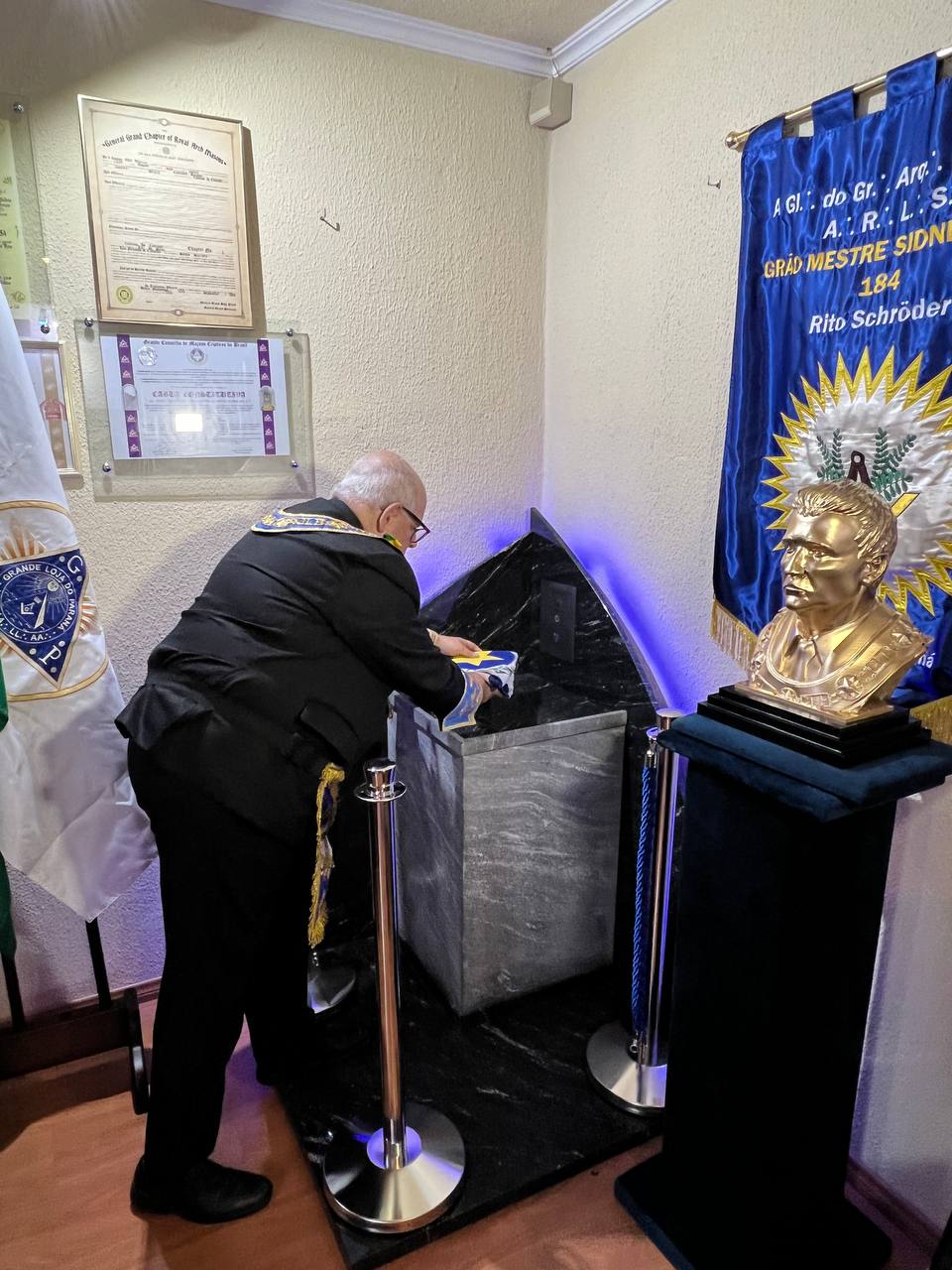 “Tivemos apoio do Grão-Mestre, que foi extremamente zeloso na forma de fazê-lo e assim, foram consultadas as demais Lojas que fizeram parte da vida maçônica do Irmão Sidney, o tema foi levado à Assembleia Legislativa, aos Past Grão-Mestres e hoje, para nós, é uma conquista histórica, pois conseguimos um fato especial e singular, trata-se do primeiro Templo Maçônico que tem em seu interior as cinzas do Patrono da Loja e as cinzas de um Grão-Mestre”, explicou Brum.