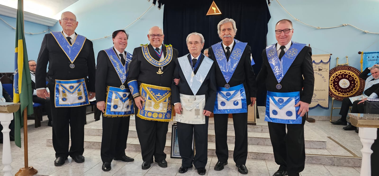 O Sereníssimo Grão-Mestre da Grande Loja do Paraná, Irmão Marco Antônio Corrêa de Sá, realizou a entrega da Comenda Gralha Azul, a mais alta honraria da GLP ao Irmão Walter Coelho Queiroz, obreiro da ARLS Apóstolo da Caridade Nº21, por seus mais de 50 anos de dedicação à Ordem.