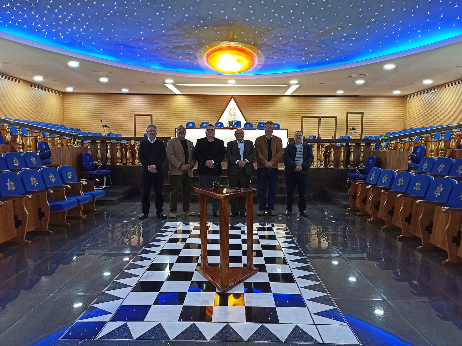 A Comitiva da GLSP estava composta pelo Grande Secretário de Relações Exteriores Adjunto, Irmão Marcos Zaracho Pereira, acompanhado pelo presidente da Grande Comissão de Finanças, Irmão Fernando Ramos, e também do Irmão Arnaldo Frutos, membro da Grande Comissão de Relações Exteriores. Eles foram recepcionados pelo Grão-Mestre, que por sua vez estava acompanhado pelos Irmãos Nilson Marchioro e Flávio Hermógenes Gaspar, respectivamente Grande Secretário de Relações Exteriores e Grande Primeiro Vigilante.